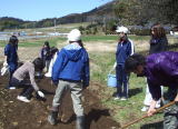 全部で6種類のじゃがいもを植付けました。鍬で溝をきって、種芋を植えていきます。みんな元気一杯に作業してくれました。お疲れ様~。7月の収穫が今から楽しみです~♪お昼は餅をついたり、賑やかで楽しい2日間でした♪(ゆきちゃん、ゆみこちゃん、ももほちゃん、ゆかちゃん、さきちゃん、れいなちゃん、りなちゃん、やまちゃん、しゅうこちゃん、むらしまさん、たかやなぎくん、あやちゃん、さとみちゃん、なっちゃん、やま) |