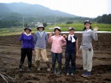 大豆レボ初日です!大豆の種まきをしました。女性5名が大活躍。元気に育ちますように!みなさんお疲れ様でした☆(すみちゃん、いむたさん、ゆりちゃん、かわむらさん、わたいさん) |