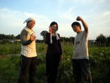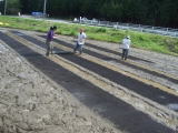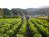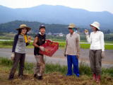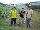 優秀な男性二人の活躍で田んぼの草取りもすすみました。午後は畑の作業。ネットはりや、果菜の片付けなど、力仕事も男性3人でやると早い早い!さすがです。 |