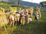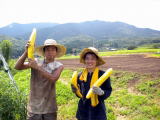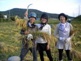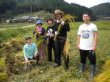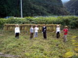 2日にもち米を刈り、今年の稲刈りは終了です。気持ちの上で、ほっと一息です・・・!翌日は畑の中にうまっている2~300キロもの大きな石を、発掘。男性のみなさんのパワーと根気で掘り起こせました☆ |