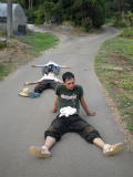 田の草でで疲れた後は、じゃがいも堀り。そして、どうやら道路に寝てみている模様。確かに、田舎でしかできないことですね。みなさん一生懸命な作業ぶりに、仕事がぐんぐんはかどりました!お疲れ様でした~☆ |