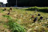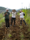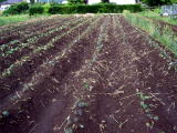 さつまいもの苗代から、はさみでちょきちょきと切った苗を、畑にさしていきます。根付くまでに枯れないように、数日、曇りや雨がつづく日が最適です。写真がない・・・。 |