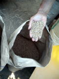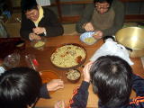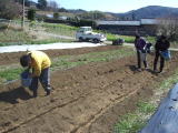 大豆レボと縁農の合同日。一口2.5キロ収穫できた大豆を、おしゃべりしながら楽しく選別。冬のこういった仕事もまた楽しいものです。縁農メンバーは踏み込み温床。ちびっこ達に、米ぬかまきが大好評。里芋の収穫もしました。 |