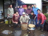 大豆レボと縁農の合同日。大豆レボはいよいよ最後の味噌作りです。縁農メンバーも一緒にお手伝い。半日以上かけて蒸した豆を杵と臼でつぶし、麹・塩とまぜでできあがり。1年間、お疲れ様でした! |
