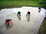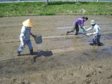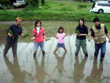 大勢でやると、楽しい&仕事もはかどります!みんな泥だらけになりながらも、真剣な表情。苗がきれいにならんだ後の田んぼはとても美しいです。お疲れ様でした☆ |
